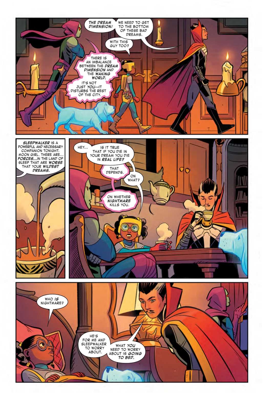Moon Girl has a nightmare problem. And she’s turned to Doctor Strange and Sleepwalker to help her solve it.