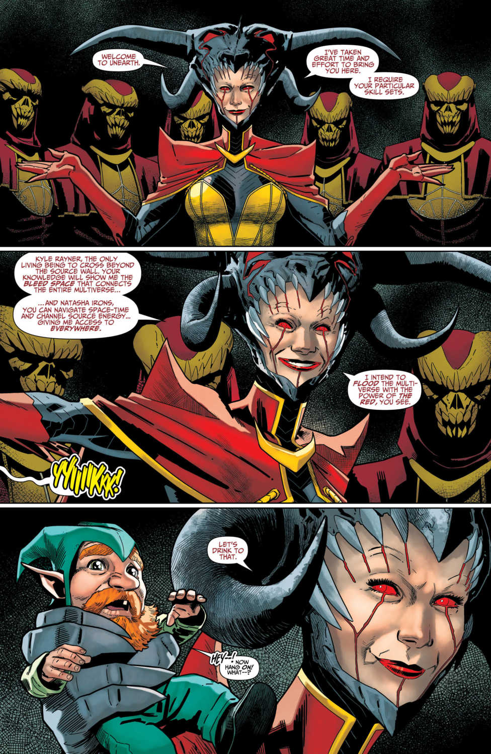 “INTO THE BLEED” part two! The Titans are trapped on the perilous Unearth, far from home and standing in the face of not one but two evil armies. But hey, no sweat, right? Then, things take a turn for the worse when the commander of the opposition turns out to be one of their own, and the Titans will need to make some hard choices on the path to victory. Plus, what is Mother Blood’s connection to the Totality?