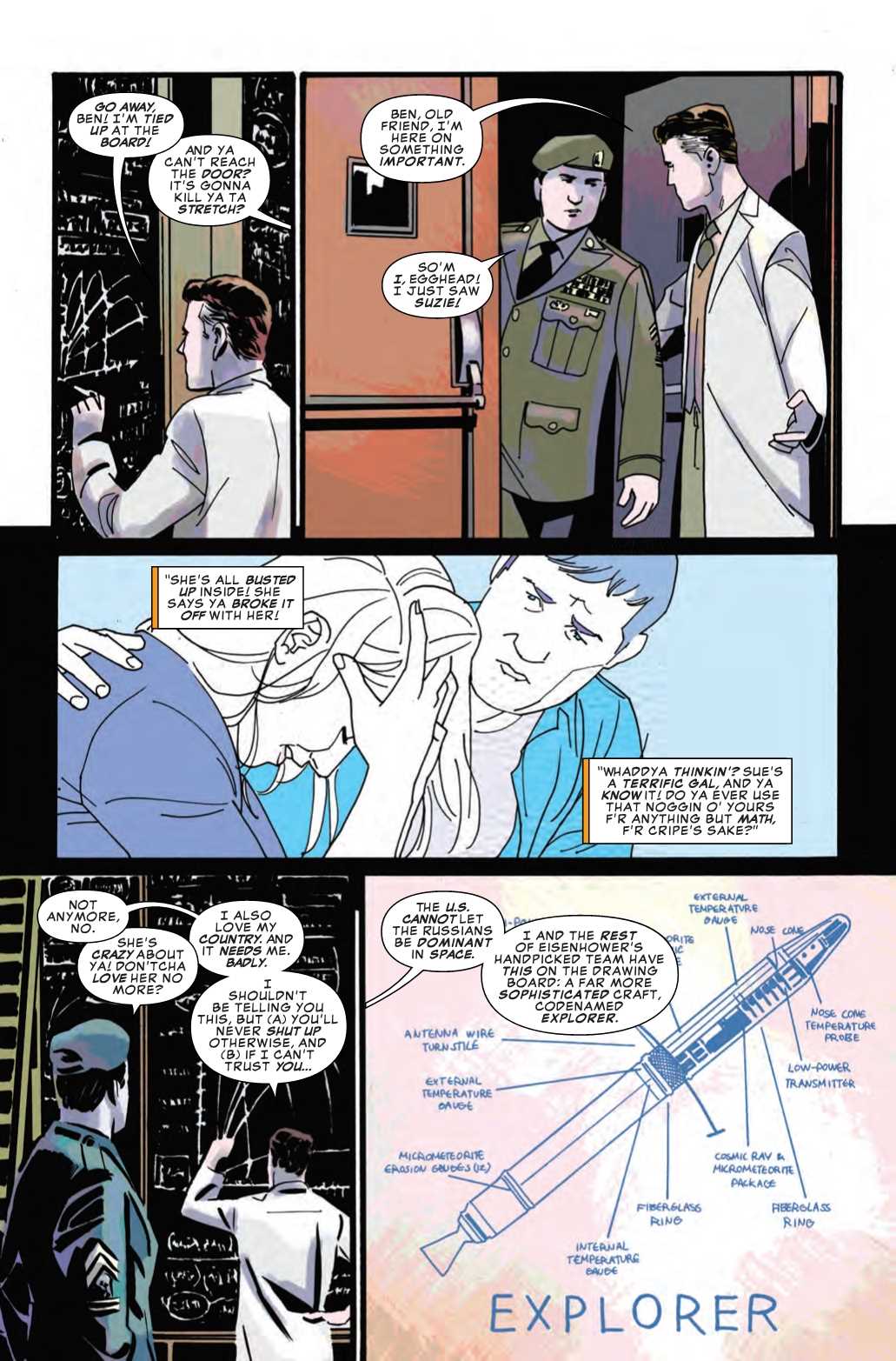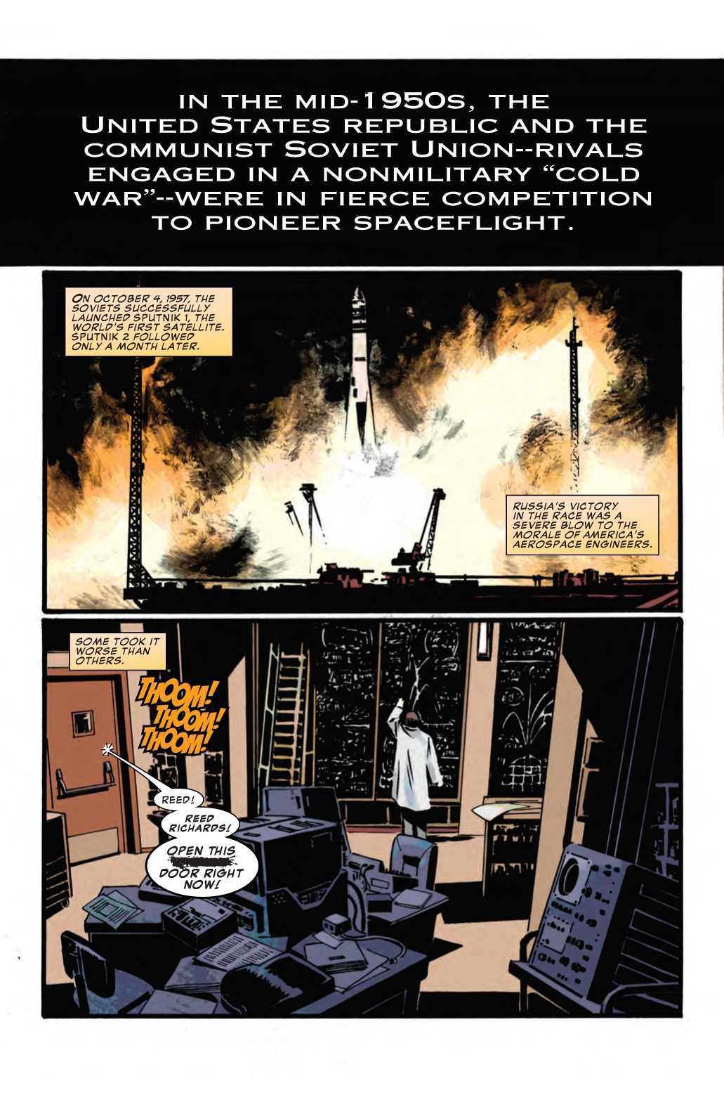 In addition to another chapter in the Wolverine story, we also get a story set before Fantastic Four #1, in 1957. The story features Reed Richards, upset that the Russians beat the United States to launching a satellite into orbit.
