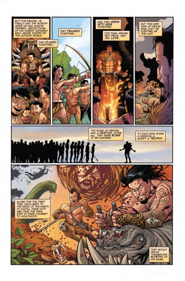 But if you think that’s just typical Marvel excess, you might want to consider that there’s actually a good reason the story needs so much space. Because in this preview of next week’s Amazing Spider-Man #16, Kraven adds a few new members to his family. 87 of them in fact, all clones of himself, created by the High Evolutionary to age at an accelerated rate so that Kraven can quickly raise them into men and turn them into Hunters.