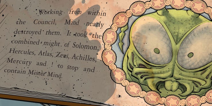 So that “S” stands for Solomon, the “H” for Hercules, the “A” for Atlas, the “Z” for Zeus, the second “A” for Achilles, the “M” for Mercury – and now the “!” sign stands for King Kid! and his Funlands dimension.