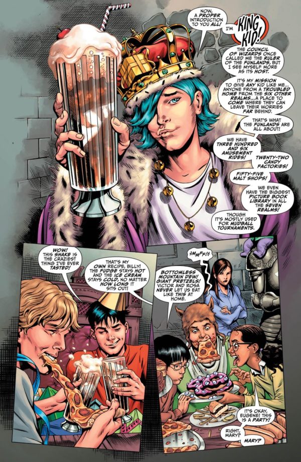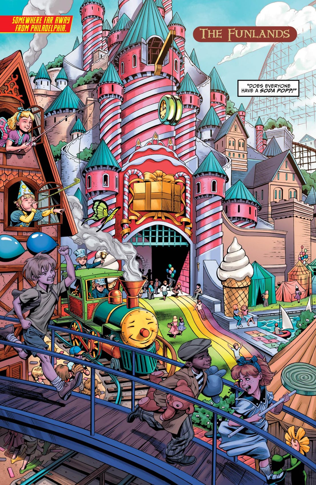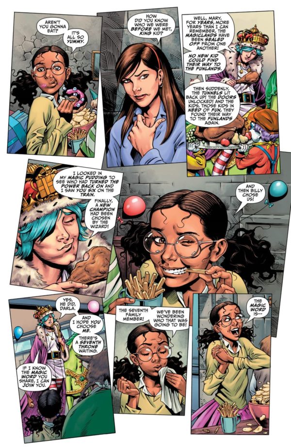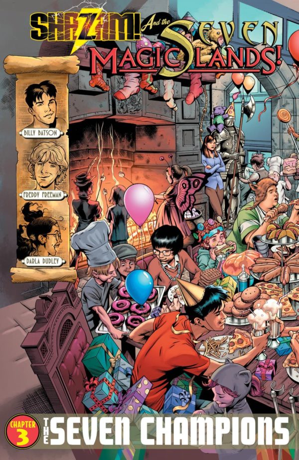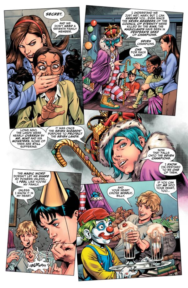 “SHAZAM! AND THE SEVEN REALMS” continues! Billy Batson’s world is turned upside down by a figure from the past while Mary, Freddy and the rest of the Shazam Family enter a realm of endless amusements, candy factories and friends in the Funlands! But what’s the catch? Plus, a shocking development within the Library of Eternity!