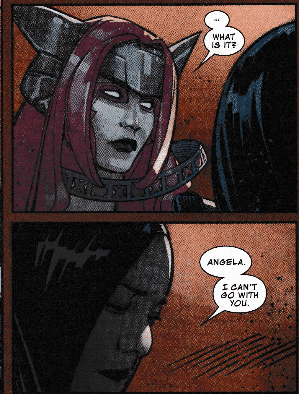 And then Brian Bendis wanted to have a go with Angela, and she left to join the Guardians Of The Galaxy.
