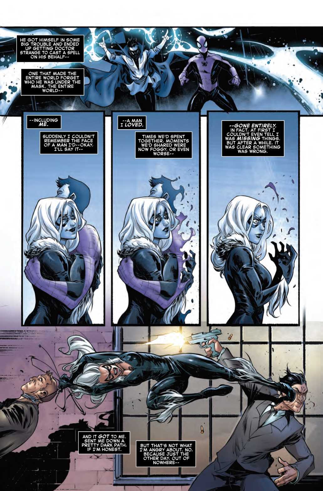 In Spider-Man’s case, he got Doctor Strange to cast a spell to magic away his big Civil War reveal (this is a pattern for Spider-Man), making everyone in the Marvel Universe forget his identity. That included ex-girlfriends like The Black Cat, who suddenly found herself unable to remember the face of the man she once loved.