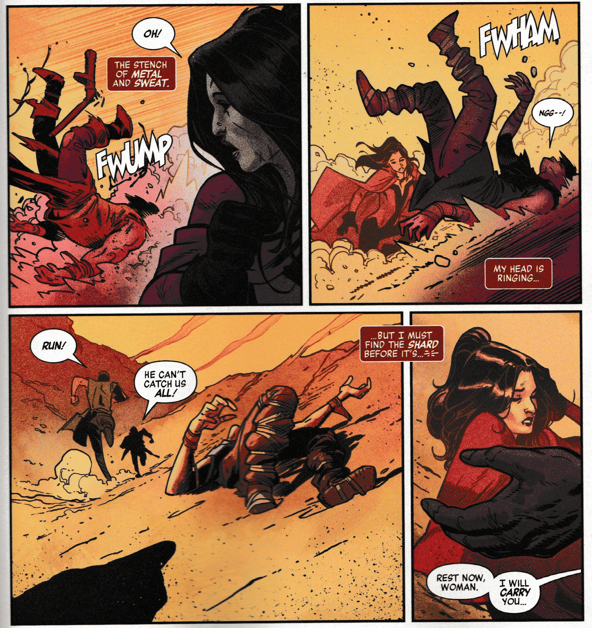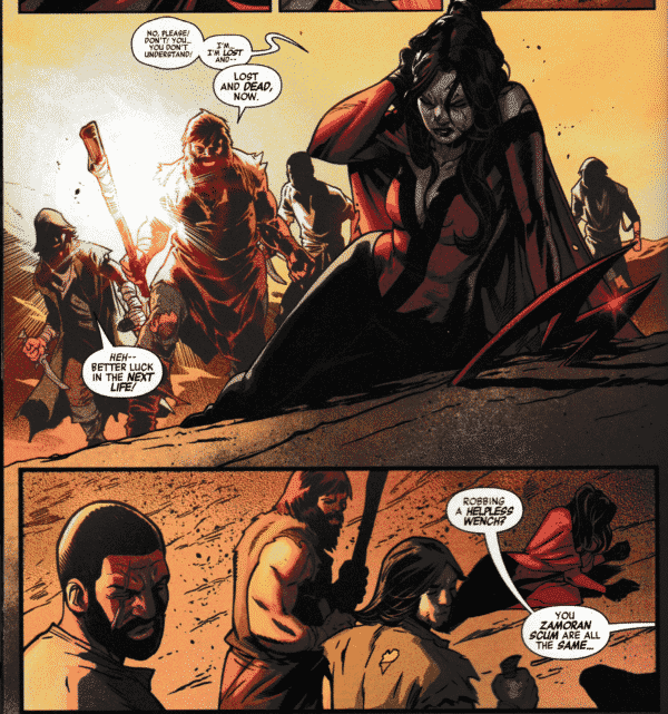 Skullkickers’ Jim Zub claims credit for the Conan pages with Scarlet Witch in the back – is he also responsible for that atrocious Kieron Gillen-style bit of wordplay at the end there? For shame…