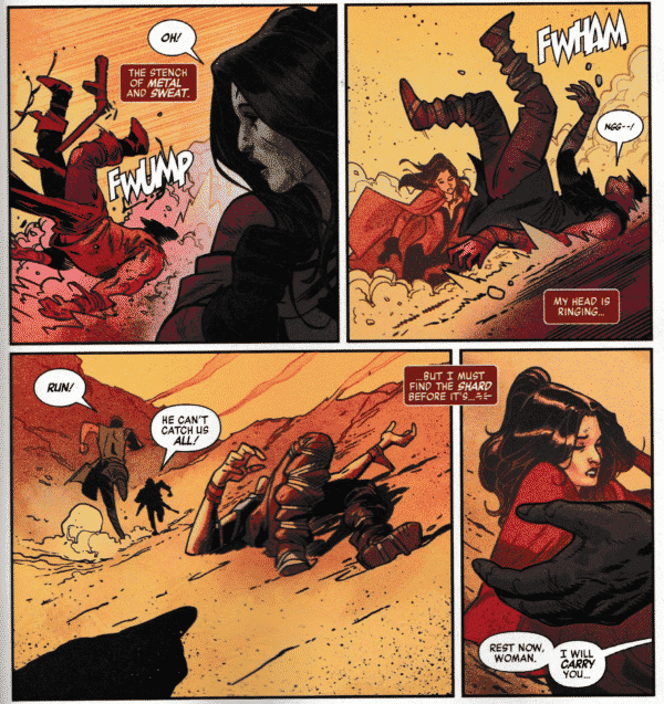 But it looks like the first appearance of Conan The Barbarian in the NuMarvel Universe s happening a week early, in today’s Avengers: No Road Home #5… as the Scarlet Witch’s attempt to escape Nyx takes her a little further than she was anticipating…