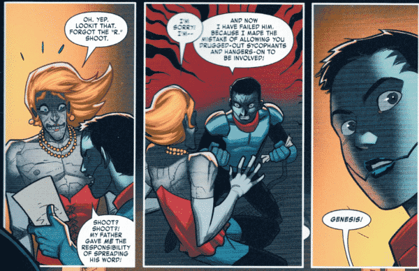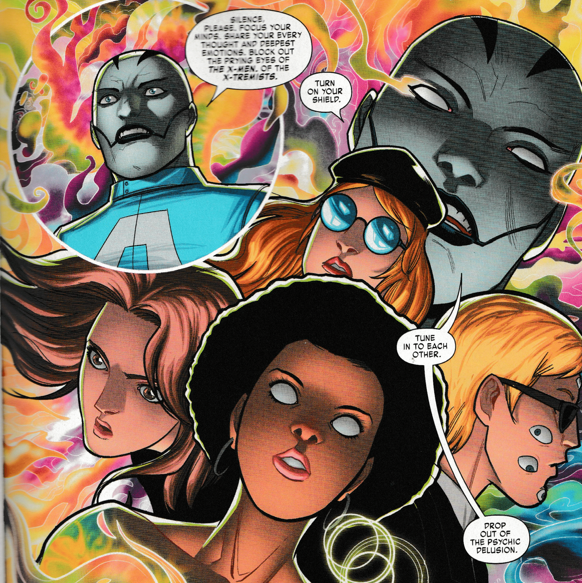And so we have Apocalypse, the big bad of the Marvel mutant universe, now its potential saviour, repositioned as some kind of super-hippy-psychedelic, going all Timothy Leary on us…