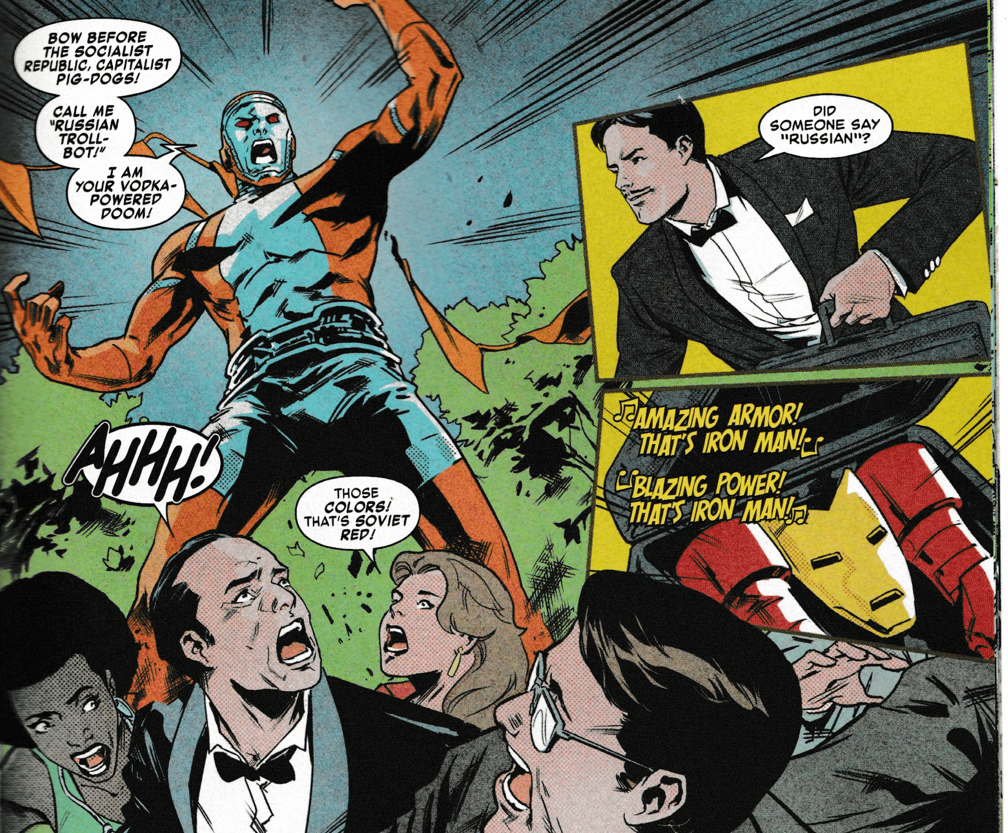 Communist heroes to fight the state? It’s that kind of day it seems – such as over in Tony Stark: Iron Man #9…