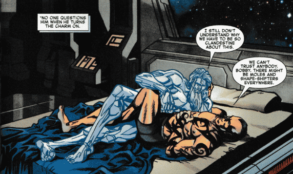 Including seeing said future Iceman getting it on with Daken. That’s Wolverine’s son. Sadly, we don’t get to hear Logan’s thoughts on this arrangement…