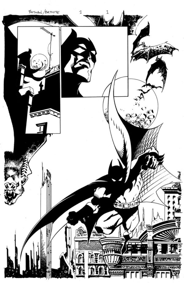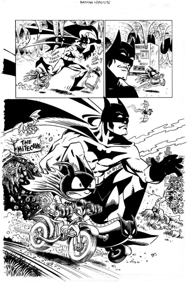 But we did get a look at a couple of the pages, drawn by McCrea and Emerson on the same page, McCrea taking Batman and the Bat-Cave, Emerson taking Bat-Mite and the Mite-Cave…
