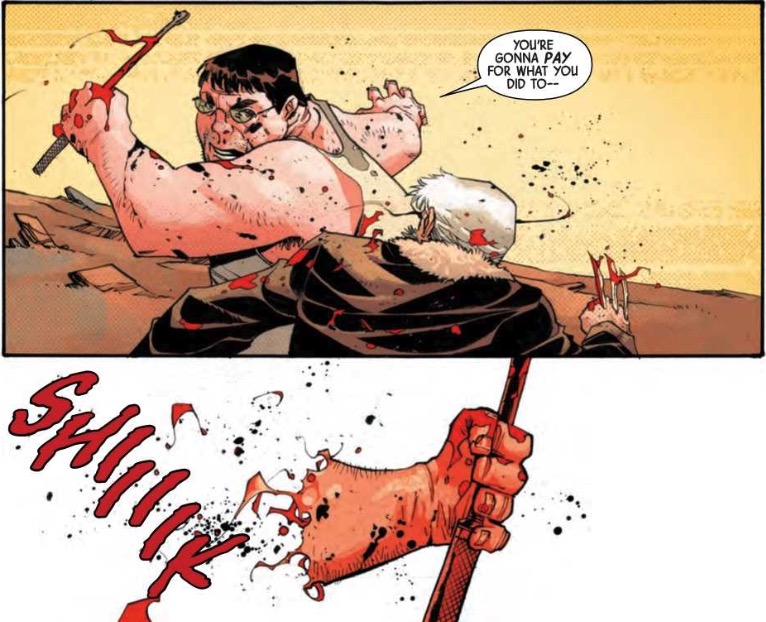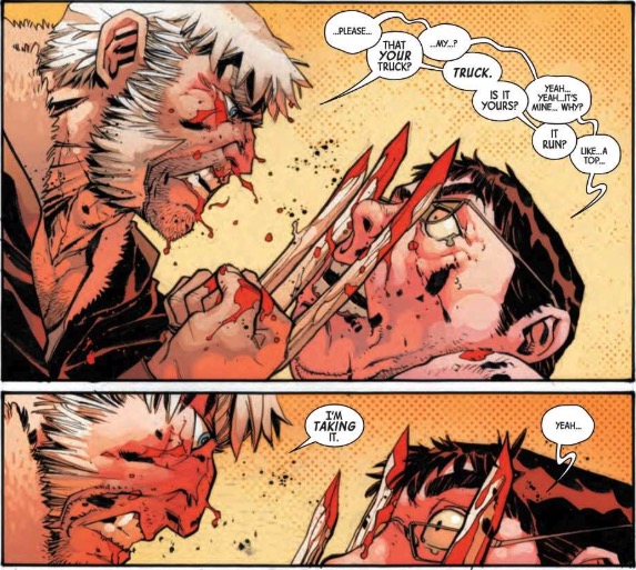 And Logan figures, when in Florida, do as the Floridians do… so he quickly dismembers his attackers…