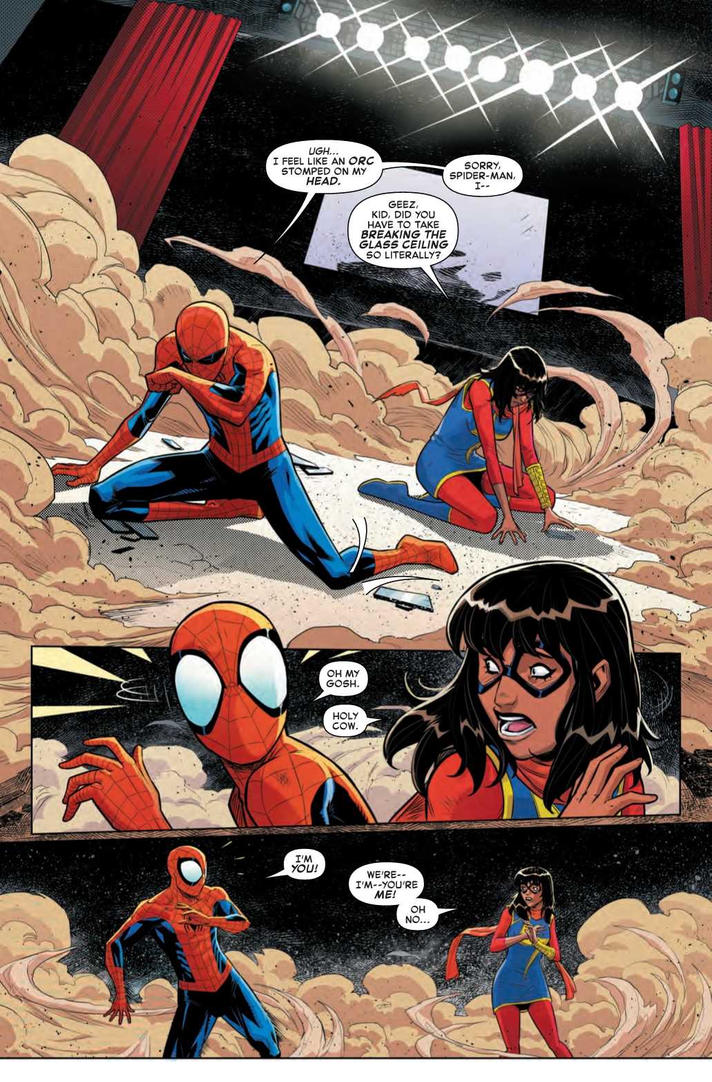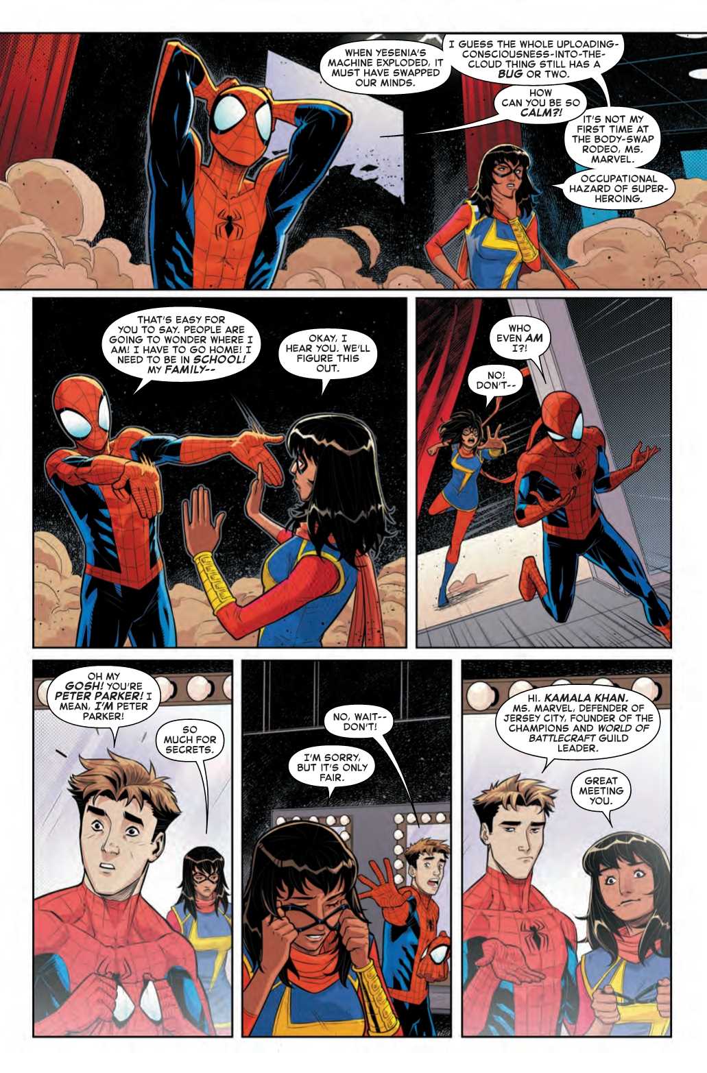 That’s right, Spider-Man and Ms. Marvel have switched bodies, also not the first time that’s happened…