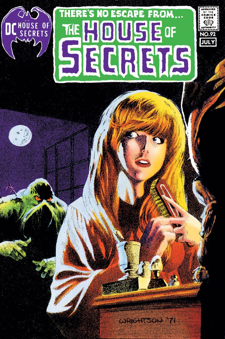 Lately, it seems like every month Marvel Comics has been publishing one or more “facsimile editions,” reprints of their classic comics which reproduce the entire books in their entirety, exactly as they were originally published… well, except for the cover price. In DC Comics’ August solicitations, Marvel’s Distinguished Competition has gotten in on some of that action with two facsimile edition reprints, one of Batman #232 and one of House of Secrets #92.