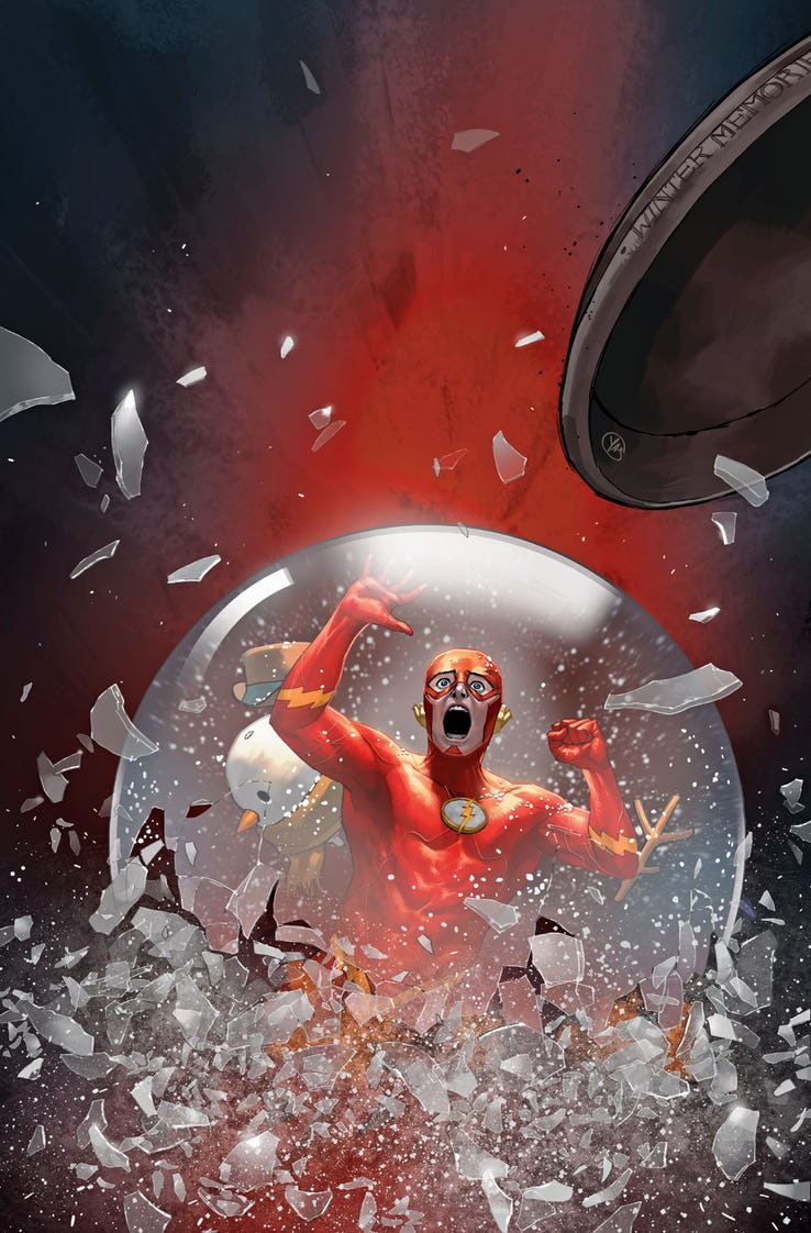 “Death of the Speed Force” begins! With renewed resolve following the events of “The Flash Year One,” the Flash is back with a new mission, a new outlook and a brand-new speedster HQ. But the Fastest Man Alive is slowing down—and there’s only one explanation: the Speed Force is dying. Plus, the Year of the Villain heats up as Captain Cold uses Lex Luthor’s offer to boost Heat Wave to the next level!