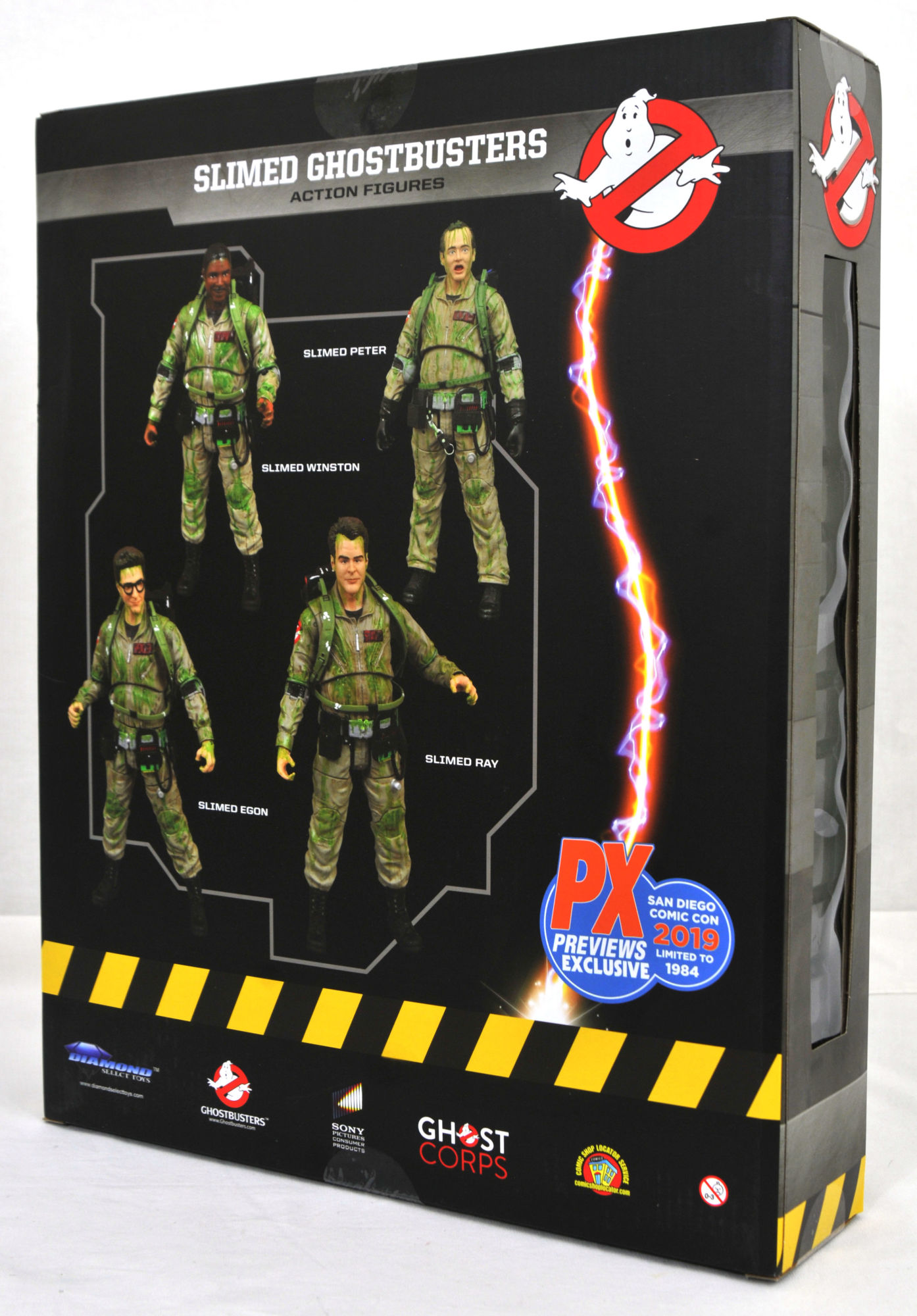 They feel so funky! To celebrate the 35th anniversary of the classic horror-comedy Ghostbusters, Diamond Select Toys has created the ultimate movie collectible – the slimed action figure 4-pack! Featuring Peter, Ray, Egon and Winston in their slimed appearances, each action figure features approximately 16 points of articulation, as well as interchangeable hands, removable walkie-talkies and more. Packaged in a full-color window box with a fifth-panel door. Designed by Yuri Tming, sculpted by Gentle Giant Studios. A Diamond Select Toys release! (JUL189180) Limited to 1,984 pieces.