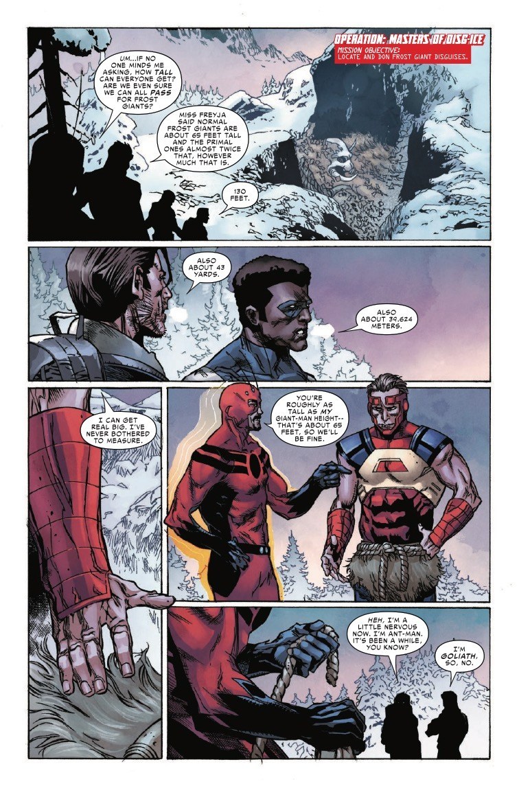 Which is probably a good idea, because Giant-Men don’t tend to fare very well in super-mega-crossover events. Just ask Bill Foster! In any case, we meet our four Giant-Men in this preview of next week’s issue…
