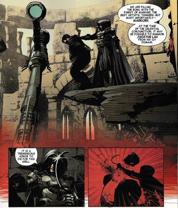 I’m not sure if someone got the publishing schedule a little skew whiff. Because today’s Savage Avengers #1 sees the death of a famous singger, at the hands of the new religious fanatics that are bringing together the unlikely team of Wolverine, Conan, Elektra, Punisher, Venom and Brother Voodoo against them. And die he does, in rather a brutal and sickening fashion.