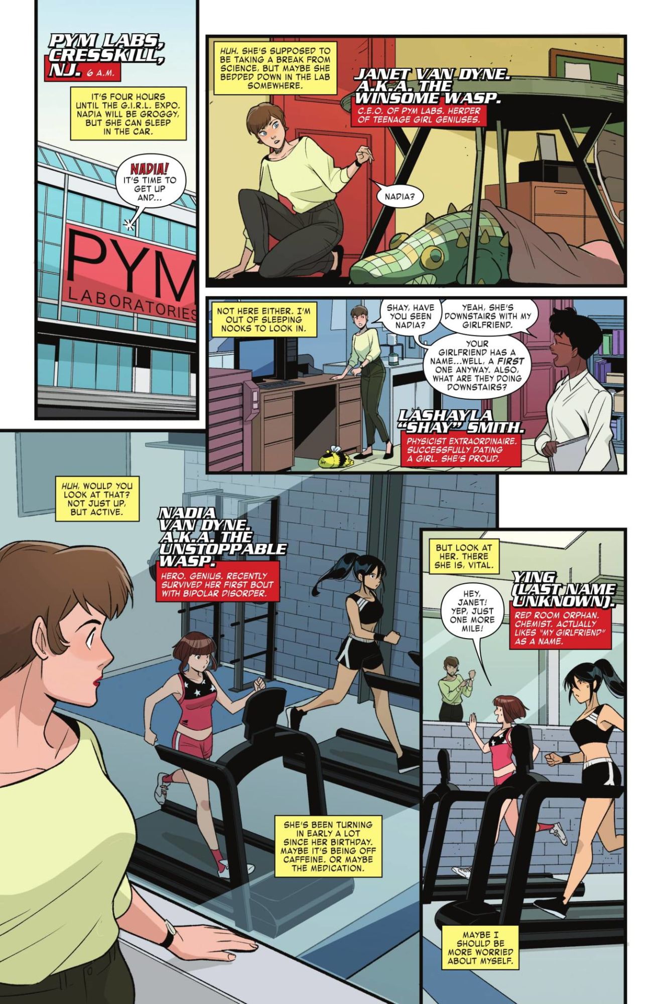 Unstoppable Wasp may be ending in July, but we’ve still got a few issues left to enjoy it. And in this preview of Unstoppable Wasp #8, we find that Nadia is enjoying life after her first bout with bipolar disorder, getting up early, exercising, and hosting the G.I.R.L. Young Scientists Expo.