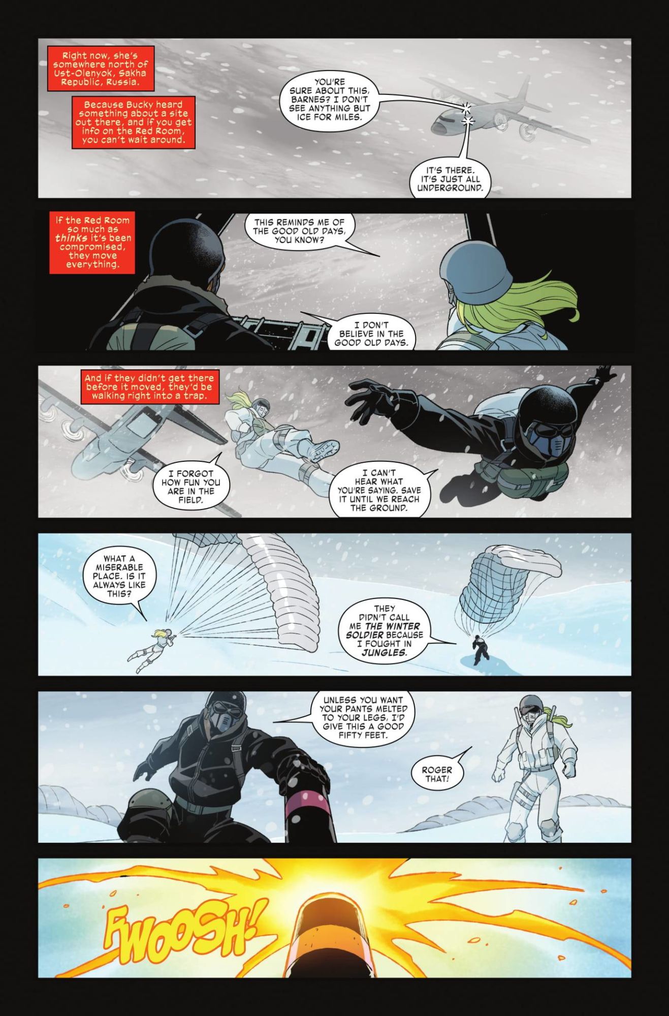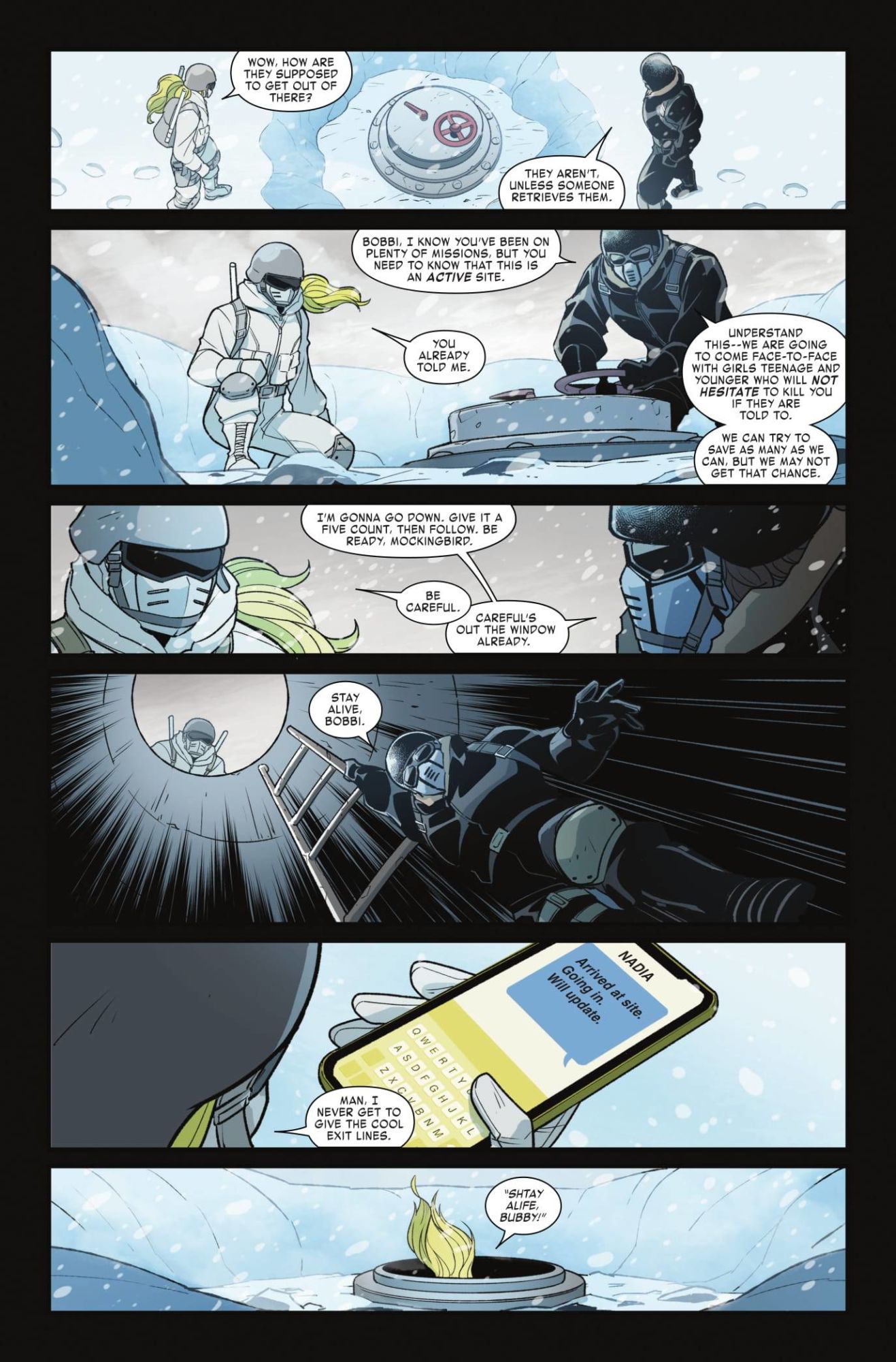 Yes, things are going alright for Nadia Van Dyne, but not necessarily for all of her friends. Because Mockingbird and Winter Soldier are on a mission to invade a Red Room facility in Siberia with hopes of locating Nadia’s mother.
