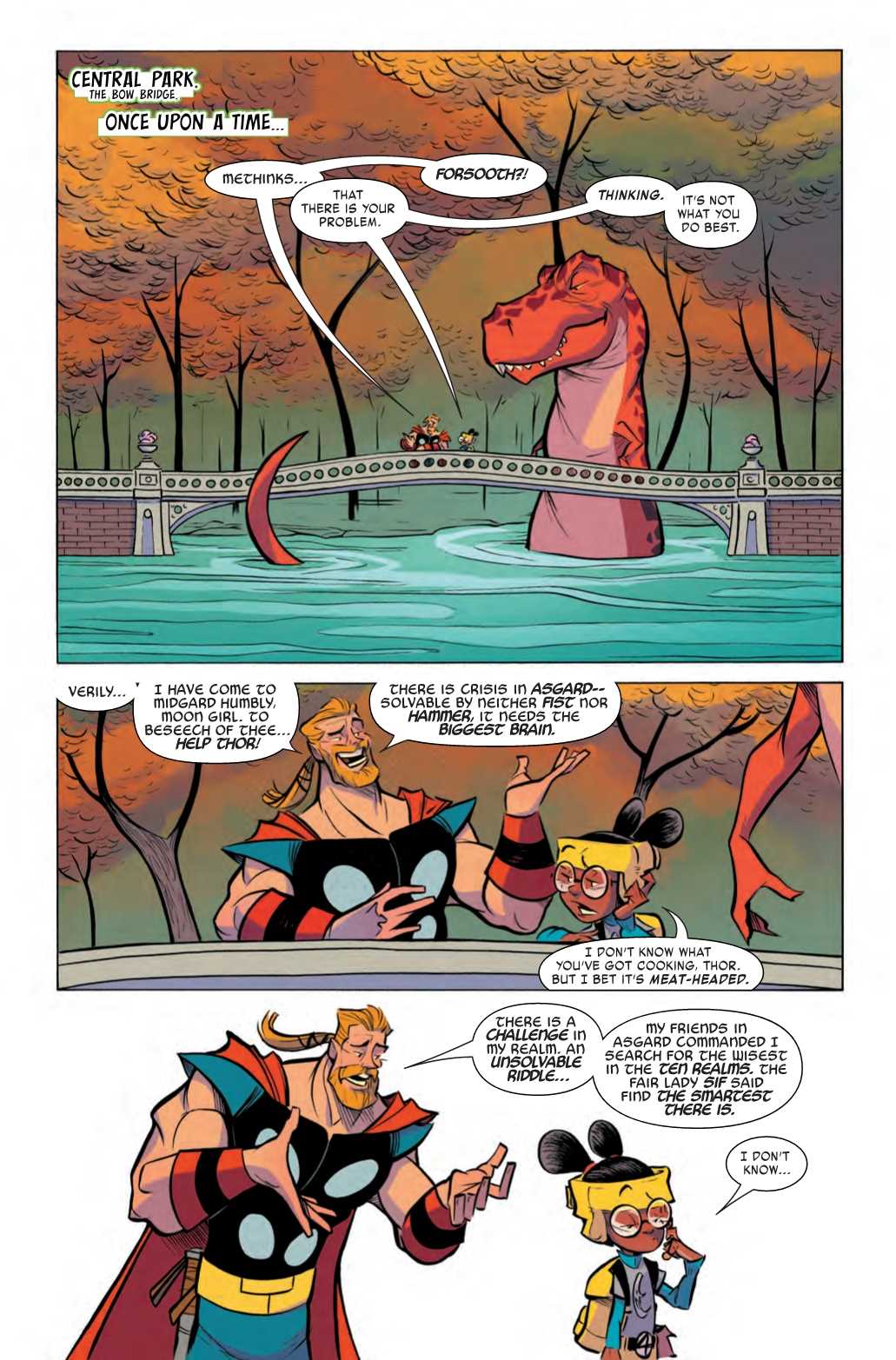 But Moon Girl’s time is valuable, and not even prodigious compliments from the God of Thunder himself are necessarily going to be enough to convince her to solve Thor’s riddle.