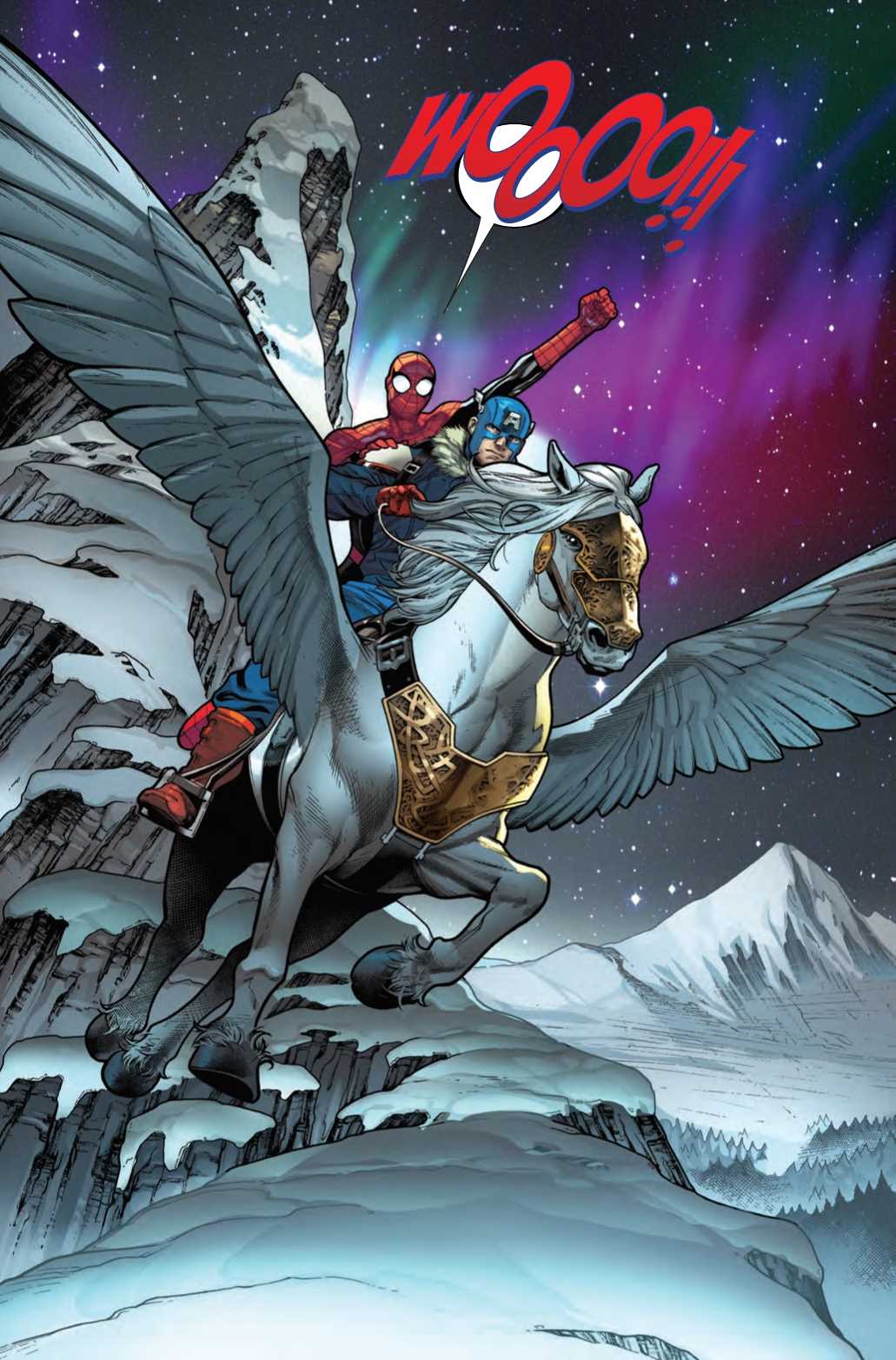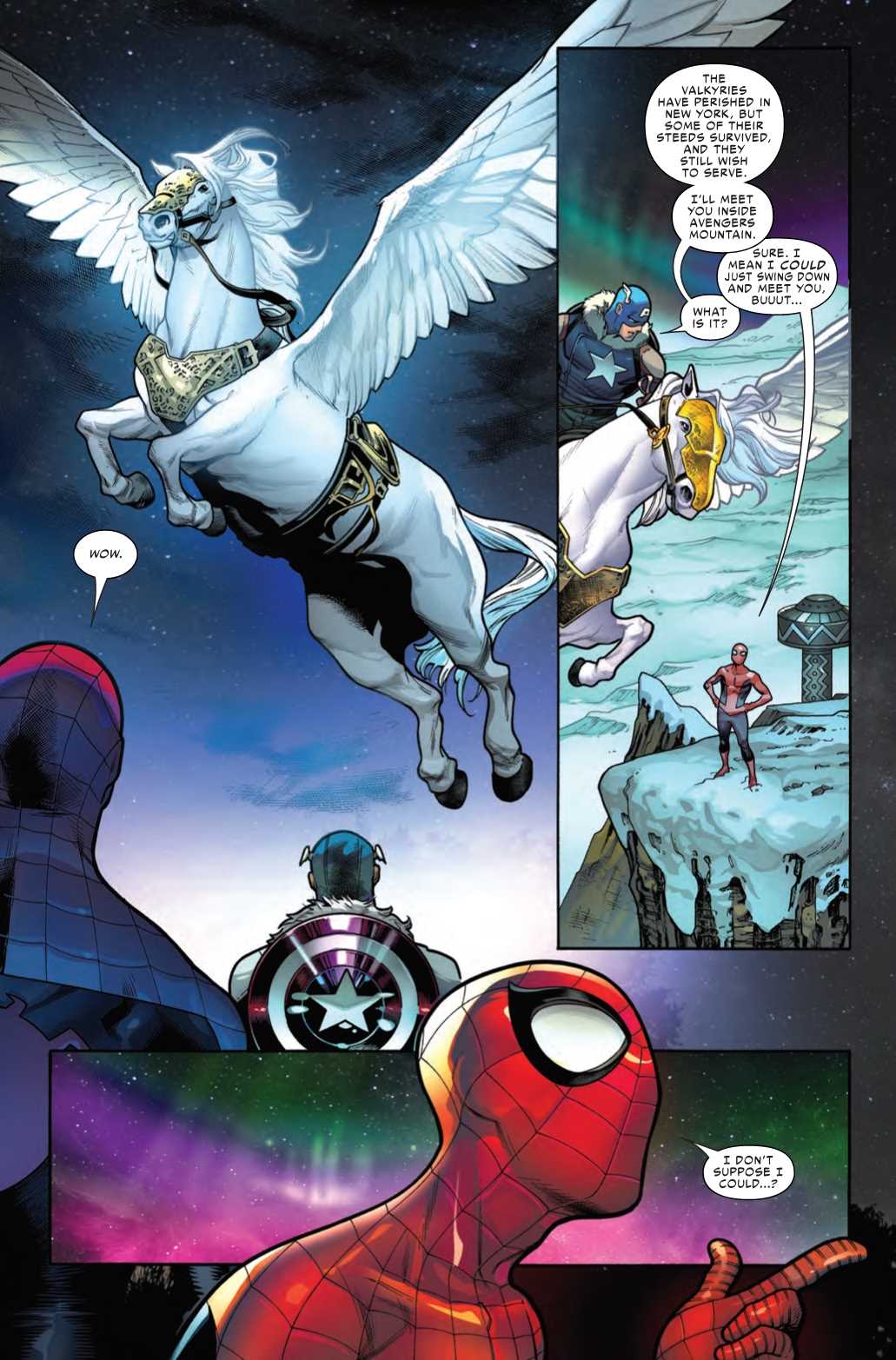 But Spider-Man isn’t thinking about responsibility right now. He’s thinking about a ride on a flying god damn horse.