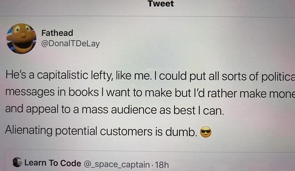 And this week he posted a new article, The Comicgate Grifters, which is the most anti-#comicsgate piece I’ve seen from him, and links to the three articles mentioned above. Apparently, #comicsgate is being destroyed by secret left-wingers using #comicsgate to take money away from conservatives, and in doing to attack them.