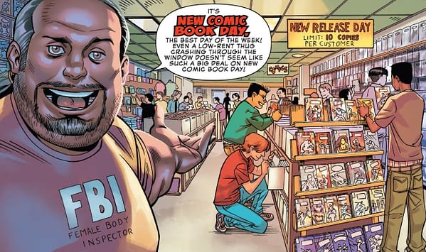 The word is that people might like to pick up a copy of the new Marvel Comics Presents #6. It is already going to a second printing, but I’ve heard word from UK stores that as of this morning it is already hot property, with people popping in to pick up multiple copies. After all, it is New Comics Day, as the Deadpool strip reminds us.