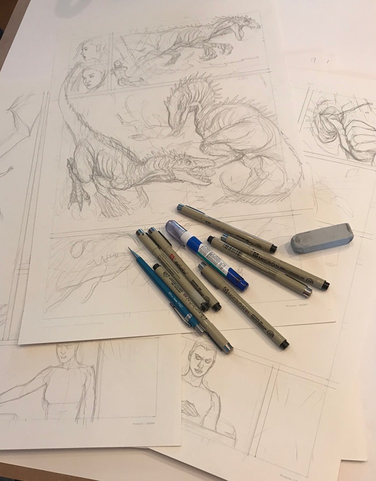 Frank Cho posted a couple of days ago, a new page from his upcoming series for Artists, Writers & Artians, Inc, Fight Girls. Also in this case, he;s been fighting against the clock, and showed off the results of three hours worth of crosshatching on the background to one particular page…