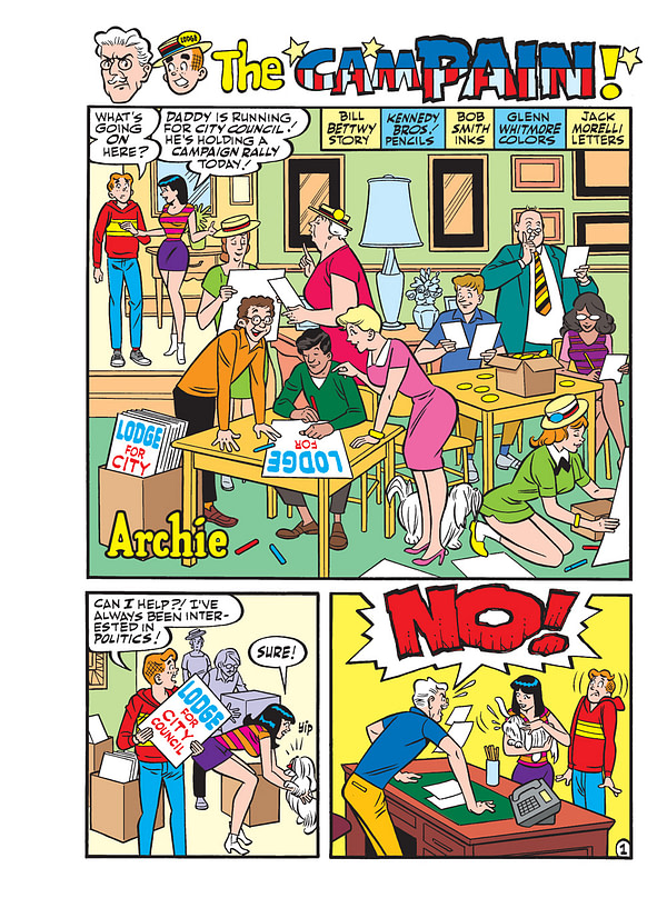 NEW CLASSIC-STYLE STORY: "The CamPAIN!" Mr. Lodge is running for Riverdale City Council, and Archie is determined to help canvass. Will he help win Mr. Lodge votes, or run the entire campaign into the ground?