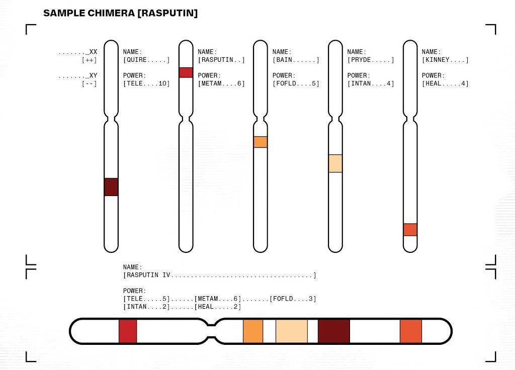 And we get a break down of one future chimera's DNA sources, Rasputin.