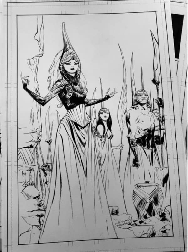 Well, you know how Bleeding Cool likes to get things early. And looking at the HTML code of the page, it reveals "Hellshock artist Jae Lee delivers a stark Red Sonja #13 collectible cover for the new arc!" So basically it's a cover for Red Sonja #13 from Dynamite Entertainment, provided direct through IndieGoGo, with a premium on the price. Oh, and we get a better look at the visual too. You can sign up for when it goes official right here.