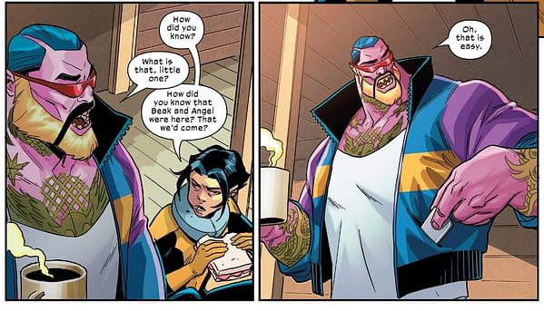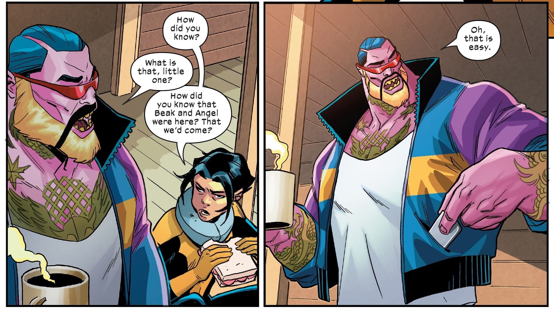 Could this be the Bad Wolf of Ed Brisson's stories in his run? Who is actually behind DOX? Could it even be a false flag situation? Would anyone put it past Emma Frost, Mister Sinister and his gossip site, or even Charles Xavier these days? #10 by Ed Brisson, Flaviano and Carlos Lopez is published in comic book shops today, probably.